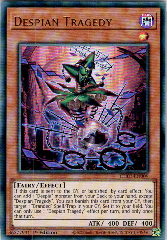 CH01-EN009 - Despian Tragedy is een Ultra Rare kaart in de staat Near Mint.